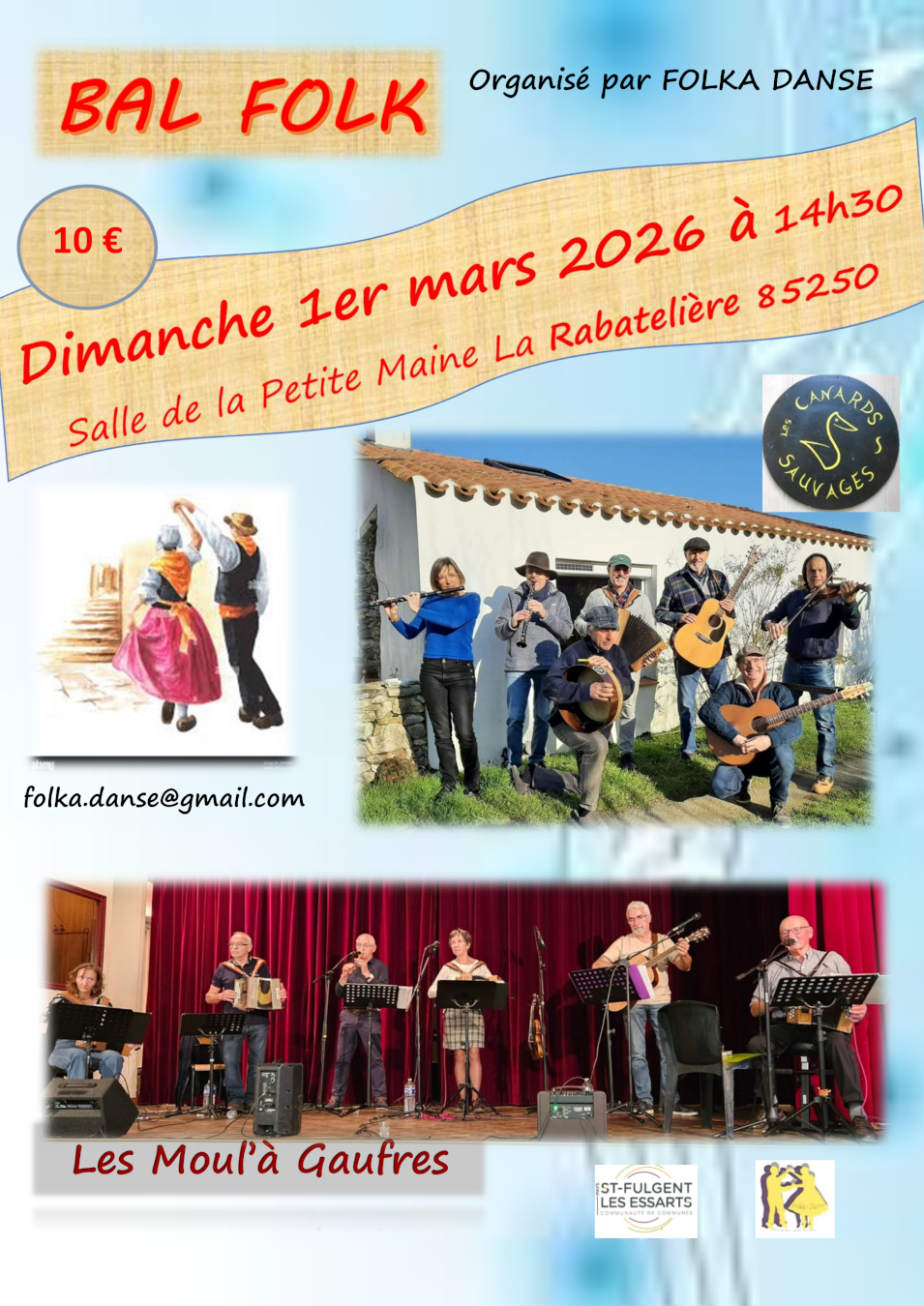 Mis en avantSalle de le Petite Maine Rue de la Petite Maine, LA RABATELIERE, FranceBal Trad/Folk annuel organisé par l'association Folka danse et animé par les groupes Moul'à Gaufres et Canards Sauvages.